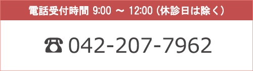 ※ 当日のキャンセル、予約システムからご予約の際のキャンセルは、お電話(042-207-7962)でご連絡ください。