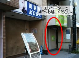 6.1Fの美容院横にある入口からエレベーターで4Fにお越しください。 |